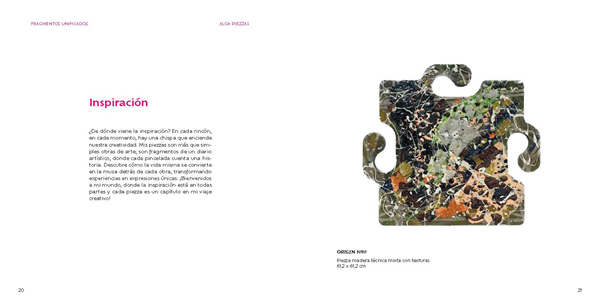 "ALOA, nacida en 1990, artista contemporánea apasionada por la pintura desde niña. Licenciada en bellas artes y complementando mi formación con diferentes masters en espacios expositivos, iluminación, escenografía, y trabajando distintas técnicas artísticas en proyectos decorativos. Finalmente decido crear mi proyecto personal, fusionando arte y diseño en un formato único y exclusivo, utilizando y reciclando los materiales que me rodean y me inspiran. Creando piezzas que llenan espacios tanto de forma individual como unidas entre sí. Formando un collage en el que el tú, (espectador) serás el creador de tu propia composición".