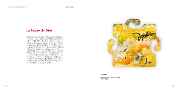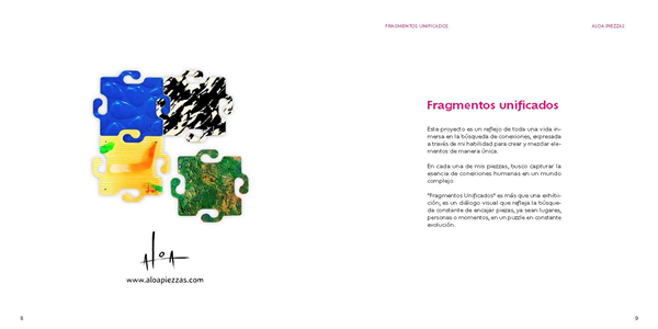 "ALOA, nacida en 1990, artista contemporánea apasionada por la pintura desde niña. Licenciada en bellas artes y complementando mi formación con diferentes masters en espacios expositivos, iluminación, escenografía, y trabajando distintas técnicas artísticas en proyectos decorativos. Finalmente decido crear mi proyecto personal, fusionando arte y diseño en un formato único y exclusivo, utilizando y reciclando los materiales que me rodean y me inspiran. Creando piezzas que llenan espacios tanto de forma individual como unidas entre sí. Formando un collage en el que el tú, (espectador) serás el creador de tu propia composición".