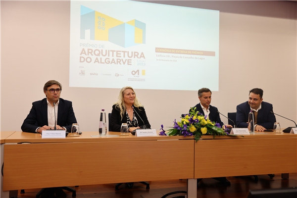 El Ayuntamiento acogió este sábado la ceremonia de entrega del Premio de Arquitectura del Algarve. En esta 3ª edición, las obras de las categorías «Vivienda Unifamiliar o Bifamiliar», «Equipamiento, Comercio e Industria», «Rehabilitación» y «Arquitectura y Paisaje» fueron galardonadas con cuatro premios y una mención de honor.Sandra Oliveira, concejala del municipio lacobrigense que presidió la ceremonia, destacó el papel fundamental de la arquitectura y de sus profesionales en la calidad del paisaje urbano y de la vida de las personas en las ciudades, y que por ello son, junto con otras profesiones, colaboradores indispensables de los municipios en las labores de planificación y ordenación del territorio que tienen encomendadas. El alcalde destacó también la importancia del Premio de Arquitectura y de las demás iniciativas promovidas por la Sección Regional del Algarve de la Orden de Arquitectos (SRAlg), por considerar que contribuyen de forma significativa a la valorización de esta actividad y de sus profesionales.