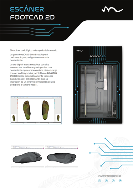 Escáner 2D para sustituir al antiguo podoscopio, teniendo una herramienta digital con la que puedes realizar medidas previas a la manufactura de las órtesis plantares e imprimir informes para el paciente o imprimir una pedigrafía a tamaño real a todo color.
